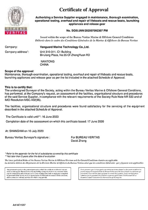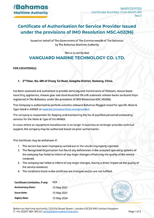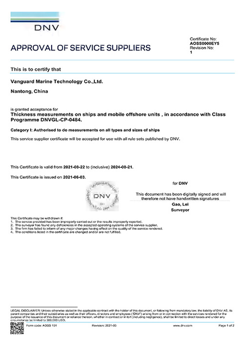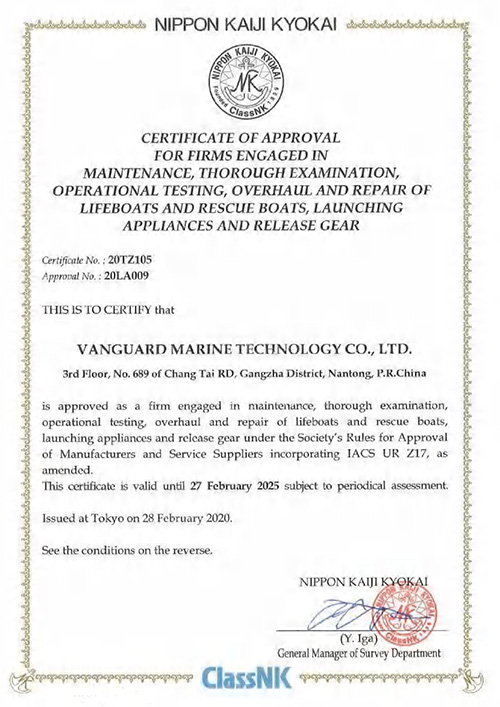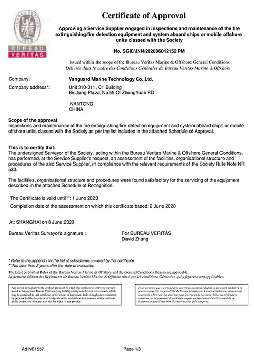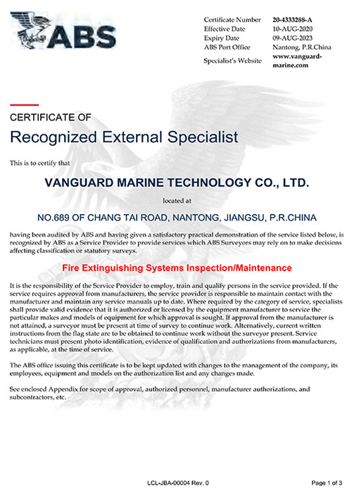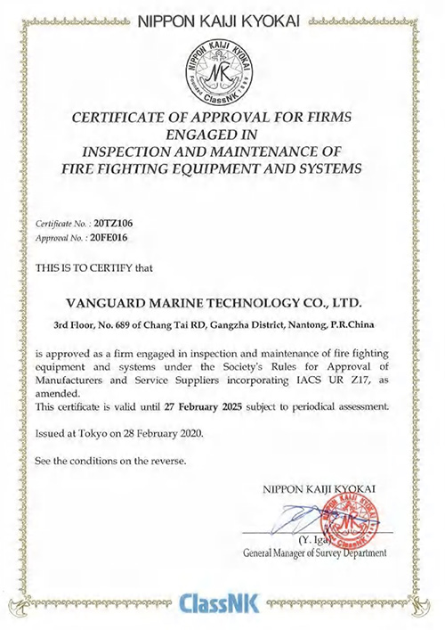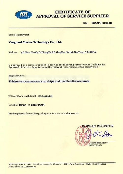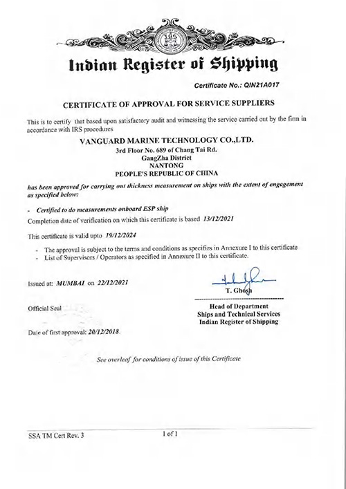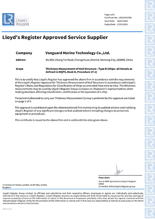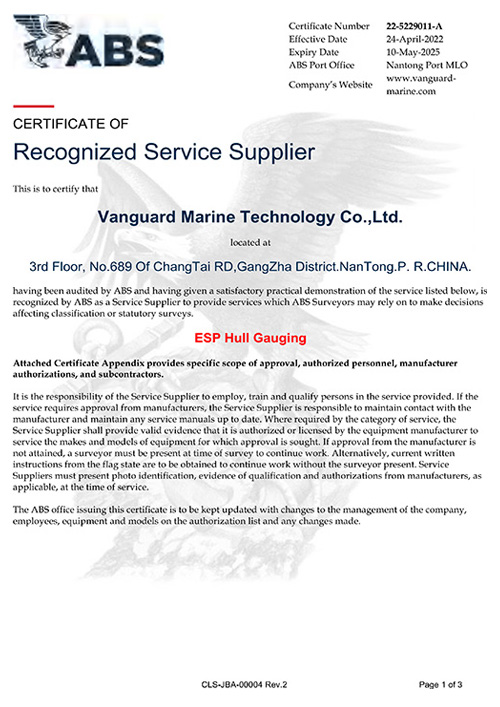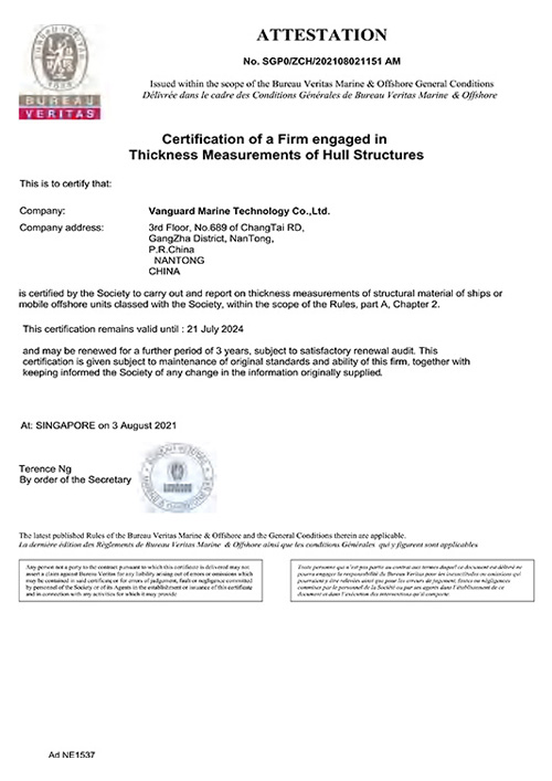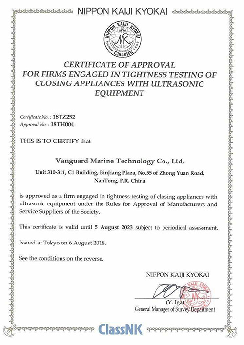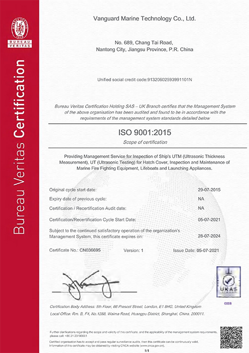 Vanguard Marine Technology Co., Ltd. was established in 2012 with headquarters in Nantong ,China.Located in the center of the Yangtze River delta.Nantong is a beautiful city surrounded by the Yangtze river and the East China Sea. Known as Rivers and Seas Pearl with "Golden waterway & Coast",Nantong opposite to Shanghai, which is China's economic center and shipping center. Connected with the Eurasian land bridge,Nantong is accessible from the Yangtze River estuary to the coastal areas of China and ports all over the world. The unique geographical location of Nantong is bound to strongly promote the vigorous development of Marine industry.Relying on the cluster of Marine industries and many years development,Vanguard Marine now has become an international well-know enterprise focusing on the marine field.Integrating technical service and product manufacturing, we provide diversified solutions for vessels.We have a modern management system 、professional technical team、advanced hardware and superb technology,with which vanguard is distinguished among the counterparts.Our business scope is certified to ISO 9001:2015 quality standard, as well as apporved by international primary classification society like NK,KR,BV,DNV,ABS,LR,IRS .We were also maritime authorised by registered Flag:Panama,Liberia and Bahamas.Vanguard Marine main business is divided into two categories: 1.Technical service: ship hull UTM ,Rope-Access UTM,UT access for hatch covers watertight,Fire Fighting Equipment & Life Saving Appliance (FFE & LSA Services), Instrument Calibration, Automatic control system and Ship’s docking broker in China shipyards.2.Product Solution: M/A air cooler, shell-tube heat exchanger,Plate heat exchanger,Finned heat exchanger(A/C evaporator,Crane oil cooler, Diesel radiator) We take most seriously to treat each demand from clients ,and strive to complete each service perfectly.We have set up a branch in Zhoushan and service station with resident engineers in major coastal ports .Our service team are always 24hrs available on call to provide quick response and precision services for all types of vessels & offshore engineering in shipyard, anchorage or during voyage. We always spare no effort to support customers to reach their targets, that’s why Vanguard Marine win the market reputation & most of users high trust.By now, We have established long-term partnerships with shipping companies. Such as Vships、BSM、Pacific Basin、MOL、Fleet、Wallem、 Anglo-Eastern, We have successfully undertook a large number of related business for ship repair, ship building and offshore project. We help our customers deliver sustainable economy growth to deal with their trading and business.Building?on?past?successes?and?sustained?efforts,we can and must?do?better?-?together to continuously improve service level and product quality, and strive to provide the most satisfaction for global shipowners!