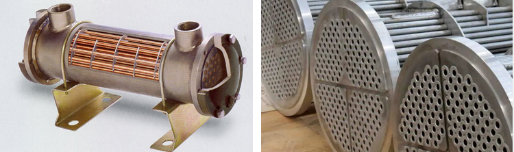 | Fixed tube plate heat exchanger | ![]() | The utility is composed of a shell, a tube bundle, a head, a tube plate, a baffle plate, a nozzle, etc. The structural features: Both tube plates are welded on each end of the shell respectively,tube bundle ends are fixed with tube plate. The tube bundle can be made into single pass, double pass or multiple pass. The utility is suitable for the working conditions where there is small temperature difference between shell and tubes. | The structure is simple and compact. With the same shell diameter, there are more tubes and less bypasses; Each tube can be replaced one by one, tube is easy to clean. |
